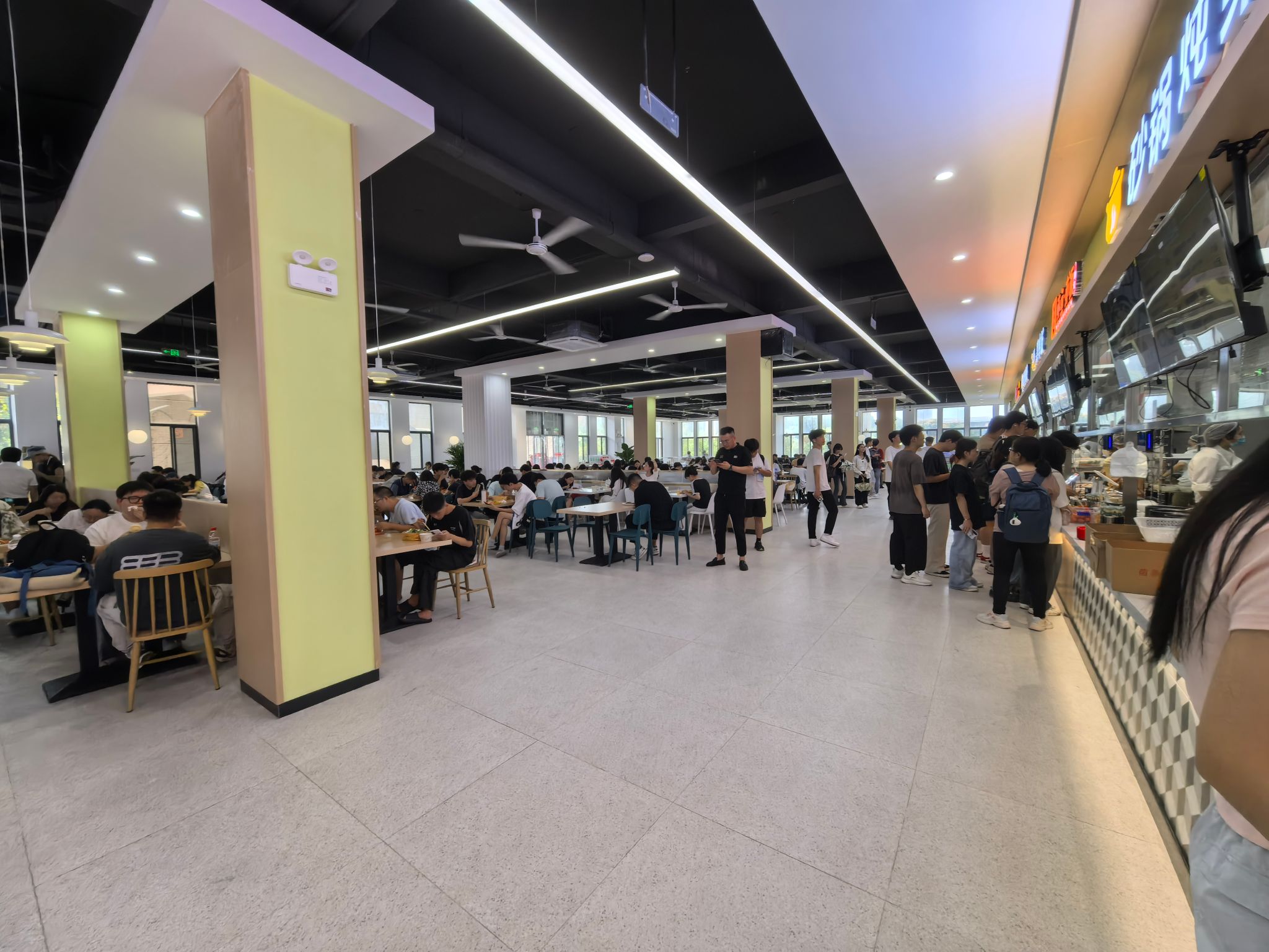 beat365正版唯一官网必一文新园食堂共2层,总面积3600平,座位数800个,分二楼和三楼,二楼档口12个以教工餐+红白案基本大火为主,兼顾时尚餐饮品牌,属综合类餐厅,满足早中晚三餐的就餐需求。三楼为2025年暑期新装修改造,10月9日正式启用。