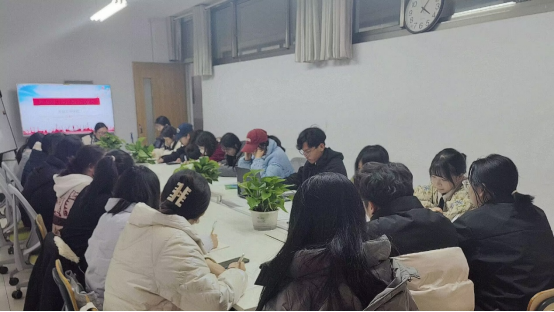 首先,王正荣带领同学们深入学习了新修订的《中国共产主义青年团普通高等学校基层组织工作条例》、《中国共产主义青年团中等学校基层组织工作条例》两个条例,结合同学们的实际从初心、实干、奋斗三个方面,勉励团学干部要提高政治站位、胸有大我,着力改善工作方法、改进工作作风,会交流、会合作、会管理、会服务,不断提升思想政治工作尤其是服务学生的素质本领,努力成为一名有情怀、有思想、有担当、有学识的团学干部。随后,各班团支书汇报了各自团支部的工作以及存在的问题,并与老师进行了交流。