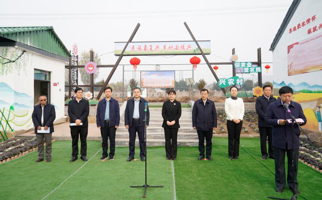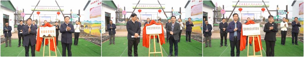 齐村镇党委书记刘立人和beat365英国官方网站党总支书记郭传鑫为党建基地揭牌;王兆海和beat365英国官方网站组织部部长、科技处处长伊文涛为农耕文明教育基地揭牌;王光明和beat365英国官方网站枣庄发展研究院、乡村振兴学院院长徐玲为国家粮食安全教育基地揭牌。