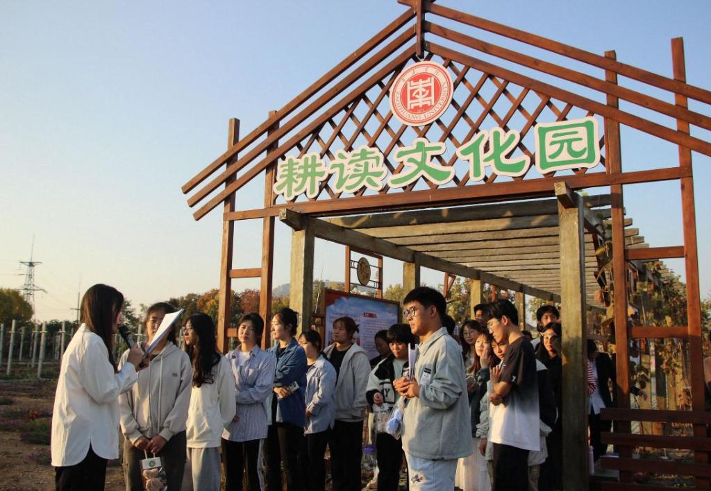 活动伊始,讲解员借助葡萄长廊深入园区,向学生们介绍了耕读文化园的主题和背景,让他们对这个特殊的园区有了更深入的了解。本次活动采取讲授与互动相结合的模式,在讲解过程中与参与人员进行答题互动,问题包括但不限于常见农作物知识。活动期间参赛选手与讲解员积极互动,回答正确者获得随机小礼品,参赛积分排名较高者,可获得“耕读园学者”证书。
