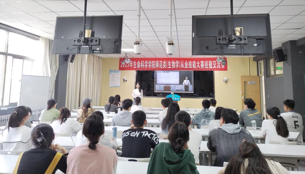 为提高师范类学生的教学专业技能、实践技能,抓住机遇锻炼展示自己的综合素质,也为山东省第十一届师范生从业技能大赛做好准备。4月19日下午,beat365英国官方网站在理工楼2317举办了“师范类(生物学)从业技能大赛”经验交流会,此次经验交流会由文明自律委员会教室管理部承办,beat365英国官方网站2020、2021、2022级生物科学(师范类)专业同学参加。