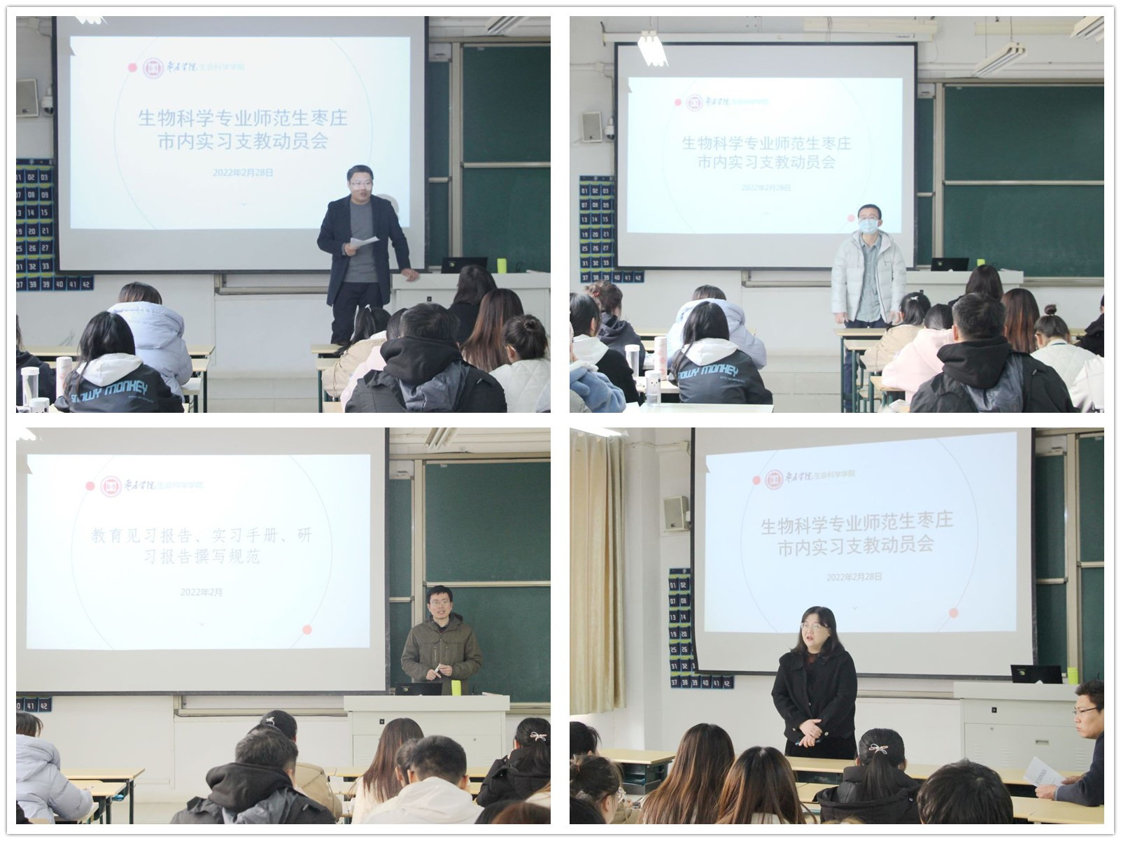 会上,朱天顺从实习支教的任务、实习支教的组织管理、实习支教重点环节安排、常见问题应对等方面对实习支教工作进行了详细介绍;苏鹏强调了支教期间的纪律和注意事项,要求同学们要做好身份转变、适应各种挑战的准备,认真完成实习支教学校安排的各项工作;薛松为同学们进行了《见习报告、实习手册规范撰写》专题培训;韩笑强调了支教实习的价值和意义,希望同学们能够珍惜支教机会,潜心教学,认真备课,虚心学习,不断提高自身教学业务水平,为将来的教师之路奠定坚实的基础。