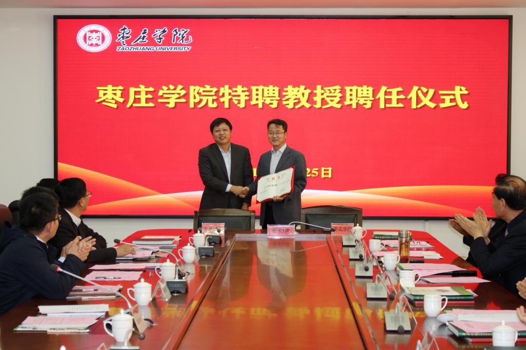 李目海为泉脉农业科技有限公司董事长付道林教授、山东农业大学王洪刚教授和吴佳洁教授颁发特聘教授证书。