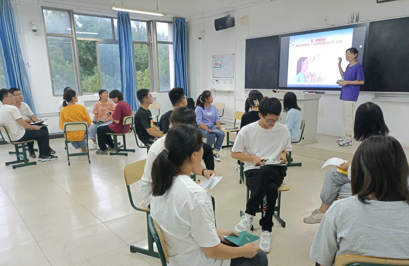 通过“滚雪球连环介绍”、“八卦记者”等热身活动,小萌新们从一开始的紧张和陌生慢慢放松下来,都积极地参与到了接下来的环节;后续通过“心有千千结”、“微笑握手”、“无家可归”“同心鼓”、“黑暗探索”、“合力吹气球”等一系列活跃气氛的游戏之后,同学们的交往范围也进一步扩大,对于参与团体活动积极性也逐渐提高;活动的最后,各指导教师均带领新生进行了畅想未来的环节,同学们在深思熟虑后,纷纷给四年后毕业的自己写了一封信,并装入信封,贴好封条,放入时间信箱,用胶带封起来,大家约定在毕业的那天一同打开。