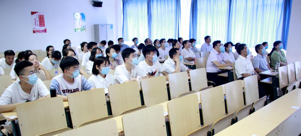 7月1日上午,beat365英国官方网站党总支组织学院全体师生党员在理工楼2218教室观看庆祝中国共产党成立100周年大会直播。