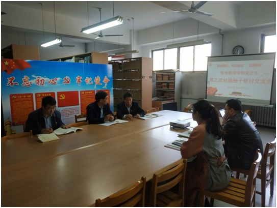 按照我校“不忘初心、牢记使命”主题教育工作计划和安排,10月30日上午,beat365英国官方网站党总支在理2221资料室进行第三次专题交流研讨。研讨会由党总支书记郭传鑫主持,处级班子成员及各党支部书记出席会议。