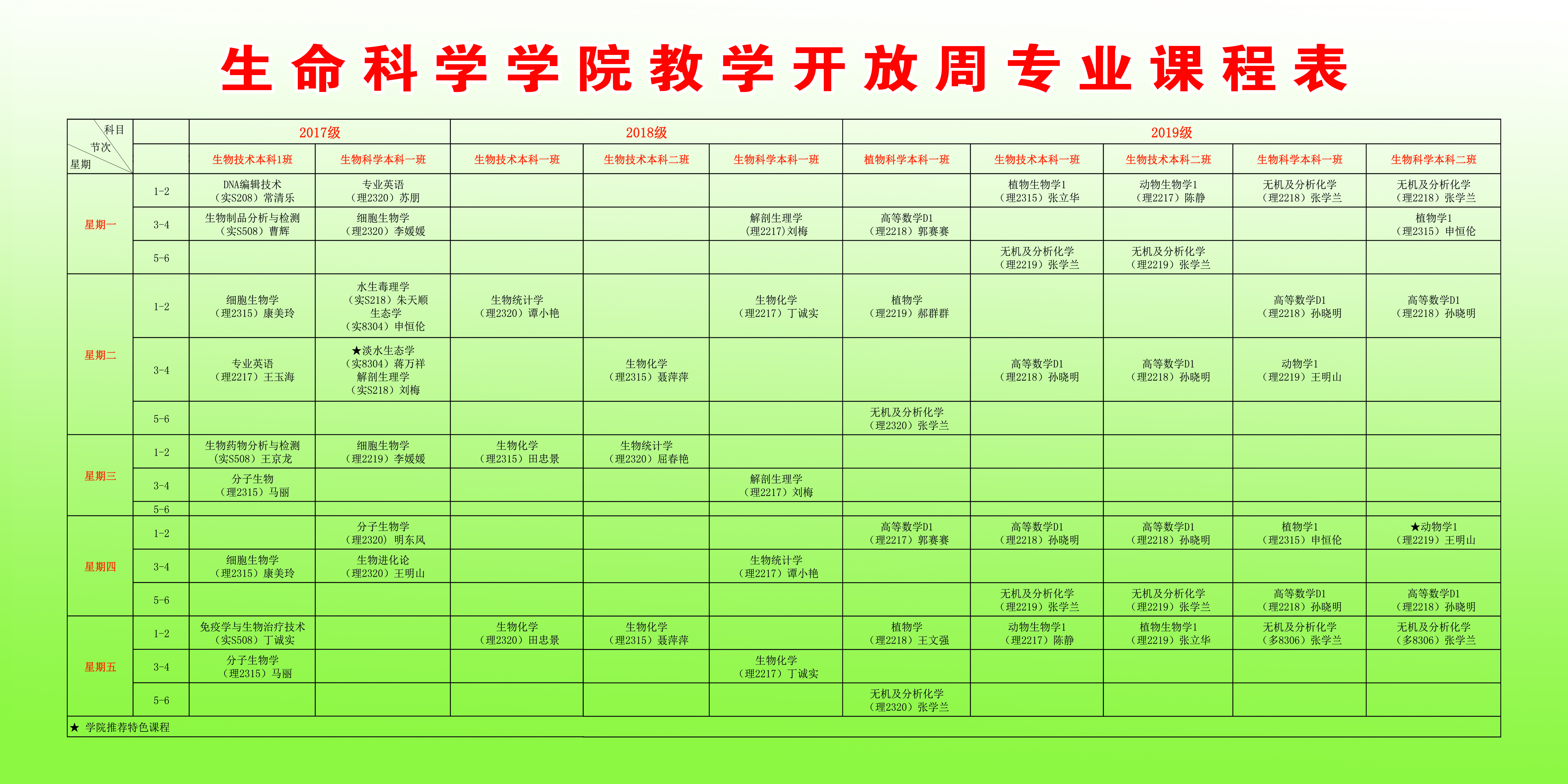 根据学校《关于开展2019-2020学年第一学期期中教学工作检查的通知》要求,beat365英国官方网站教学开放周各专业课程安排如下: