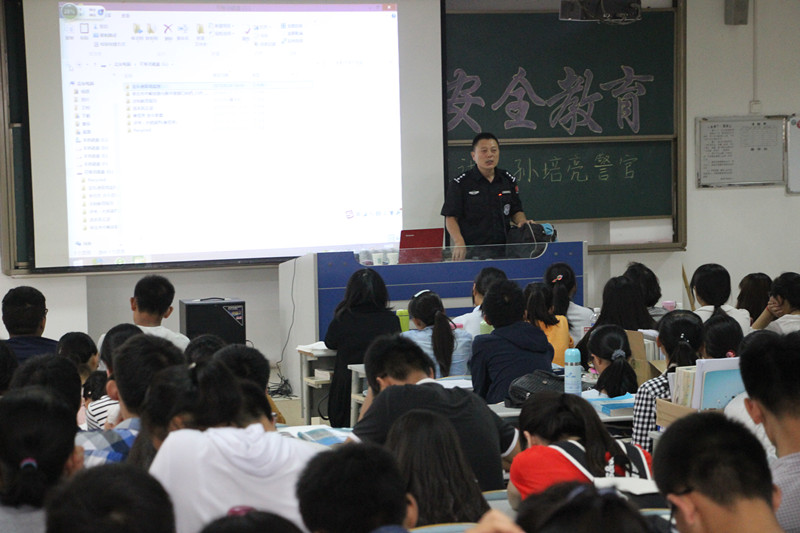 为增强学生的法制观念和安全防范意识,近日,beat365英国官方网站特邀市中区公安分局文化路派出所孙培亮警官为beat365官网师生举办法制安全教育讲座,讲座由陈原国副书记主持,2015级全体新生、辅导员参加讲座。