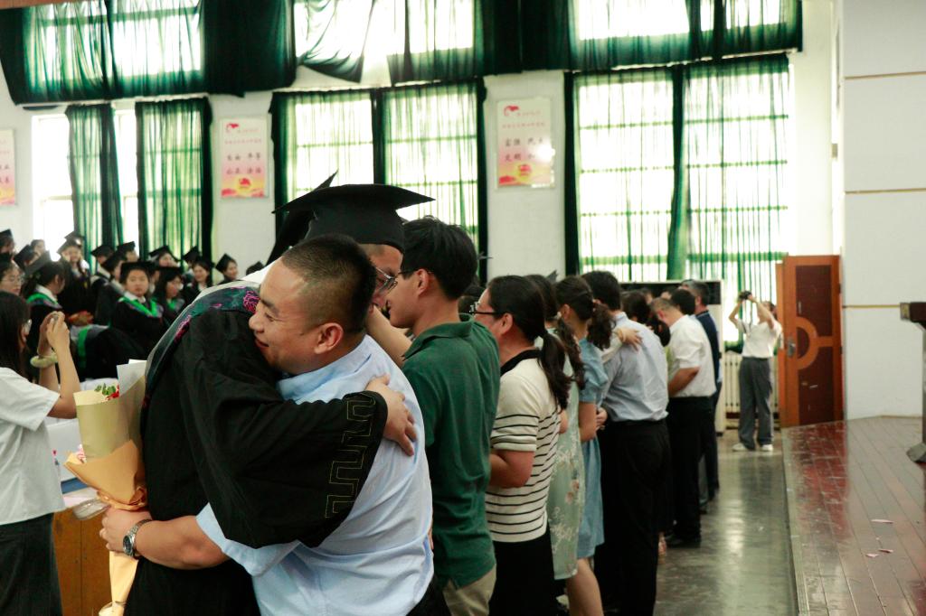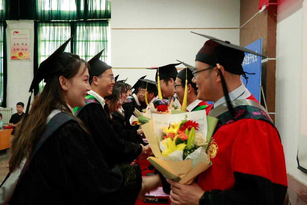 典礼上,毕业生代表为在场领导老师献上鲜花,向他们的辛勤付出和默默奉献表示感谢,并热情拥抱、倾心话别。