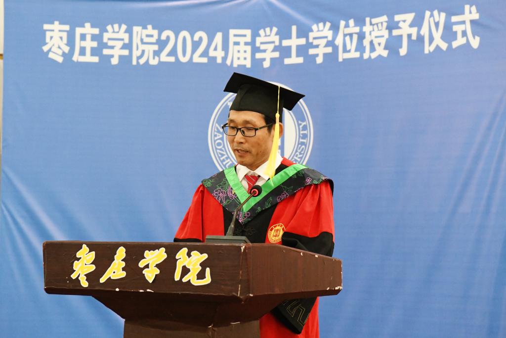 学院党委副书记、院长王玉海深情回顾了同学们的成长经历,代表学院向各位毕业生表示热烈祝贺和美好祝愿,向辛勤耕耘、默默奉献的老师致以衷心感谢。并希望同学们要继续保持热爱学习的好习惯;要学会爱,学会尊重,学会感恩,学会包容;成为敢于直面艰难困苦的人;要自信、自强、自立。在向下扎根中坚守初心、磨砺意志,在向上生长中突破自我、追求卓越,用赤诚之心铸就强国梦想。