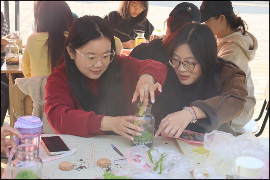 为培养学生的动手能力,提升同学们对于生物多样性价值的认识。10月23日下午beat365英国官方网站在青年广场举办“微缩世界,宏观生态”——生态景观瓶制作活动。本次活动由校学生工作处主办,beat365英国官方网站承办,有beat365英国官方网站、心理与教育科学学院、化学化工与材料科学学院、光电工程学院等学院的同学参加。