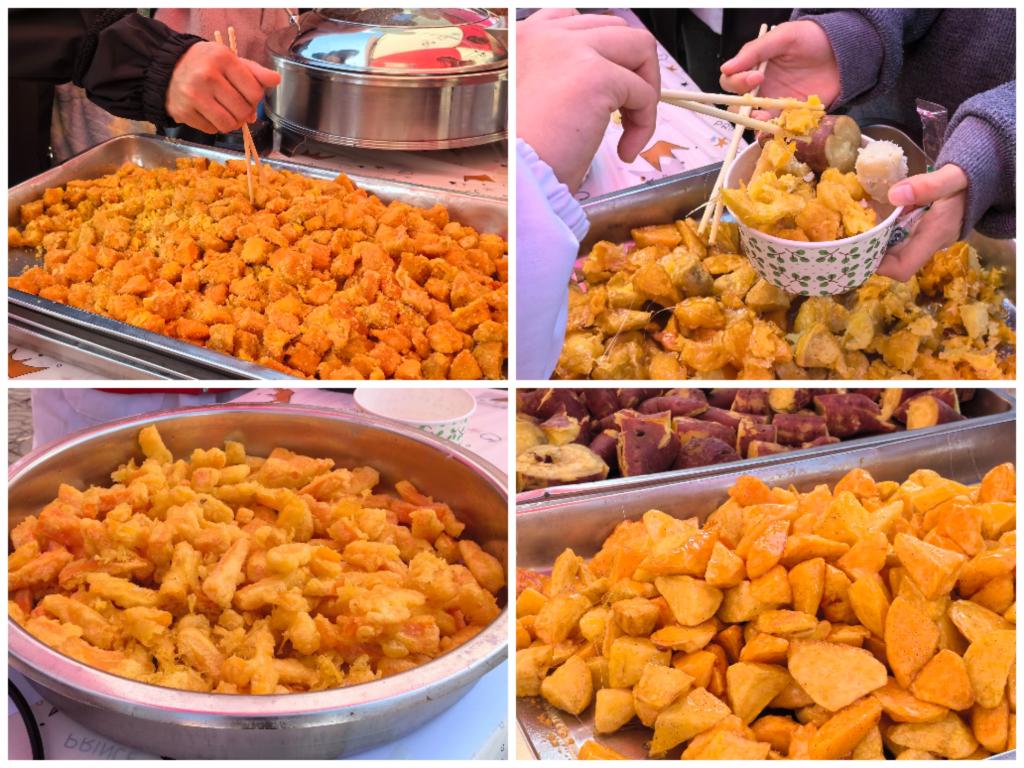 活动现场人头攒动,热闹非凡。在品尝区,新鲜出炉的红薯香气四溢,软糯香甜的金黄薯肉热气腾腾,让人垂涎欲滴。摊位前人头攒动,前来品尝的师生们络绎不绝,各种红薯美食凭借绝佳的口感和独特的魅力,受到广大师生的广泛好评和大庆赞誉;在展销区,包括哈密冰糖薯、济薯26、西瓜红蜜薯、榴莲蜜薯、烟薯25等一筐筐新鲜出土的红薯以其饱满的外形、鲜艳的色泽吸引着众人的目光。参与者纷纷选购,希望将冬季的第一份甜蜜和温暖积极与朋友及家人分享。