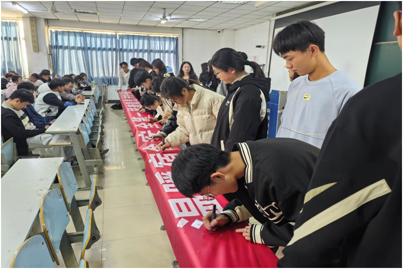 会上,主持人先对晚归查寝、卫生检查和安全检查等细节进行阐述,帮助学生深入了解宿舍规章制度,随后通过观看视频的方式让学生们进一步了解忽略宿舍问题带来的严重后果。同时针对近期学生反映的问题进行补充,着重强调三点注意事项:一是严禁使用违规电器,保障用电安全;二是坚决禁止夜不归宿,确保人身安全;三是注意保持宿舍通风,预防细菌滋生和异味产生,预防秋冬季节传染病的传播。此外,主持人还要求每位宿舍长强化责任意识,关注室友思想动态,做好老师与学生之间沟通的桥梁和纽带,为寝室管理与建设工作筑牢根基。到场的宿舍长主动的在“温暖宿舍,安全第一,排查隐患,守护平安!”横幅上签名,展现出了他们积极向上的风貌。他们会以身作并带动身边的同学们一起创文明宿舍,充分展现出生科学子积极上进的态度。