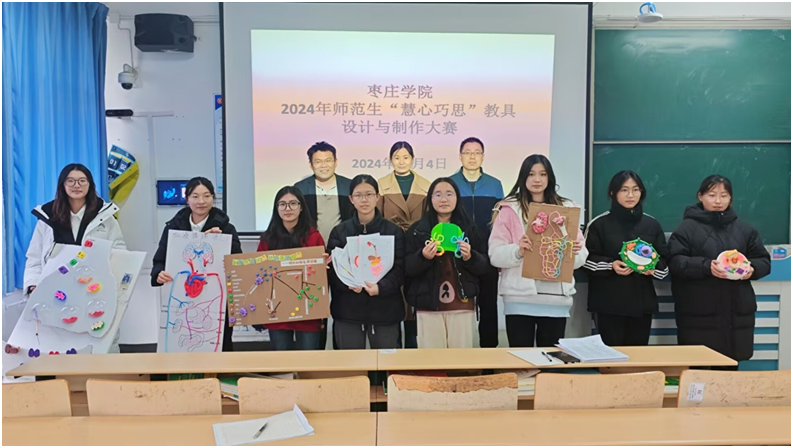本次大赛以“实践•创新•成长•未来”为主题,吸引了 58 名同学积极参与。比赛中,选手们依据中学生物教学需求,巧妙选用泡沫板、吹塑纸、输液管等简易材料,依照生物的结构功能、形态生理等特征,制作出了各类生动直观的教具作品。他们运用专业知识,通过现场讲解与操作演示,将呼吸系统、神经系统、血液循环系统、泌尿系统等复杂的理论知识生动立体地展现出来。经过一番激烈比拼,最终评选出一等奖 3 名、二等奖 6 名、三等奖 9 名。