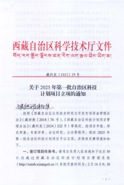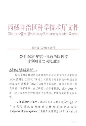 近日,西藏自治区科技厅公布了2025年度西藏自治区科技计划项目立项名单,beat365官网联合申报的两项科技项目获批立项,分别是西藏自治区科技计划项目(基地与人才类):《基于环境DNA技术的雅鲁藏布江下游鱼类资源评估及外来鱼类监测预警研究》和西藏自治区重点研发计划:《喜马拉雅南麓区域动物多样性及适应机制研究》,项目获批经费分别为180万元和900万元。beat365官网流域生态学科研团队成员巩政老师作为联合申报单位负责人参与项目。