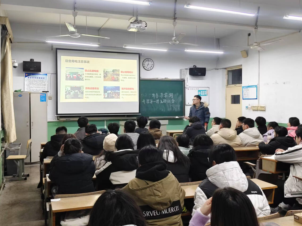 班会上,辅导员和班主任老师围绕学情分析、安全教育、卫生纪律、校规校纪、心理健康、生涯规划等多方面,进行了深入的讲解和指导。老师们结合上学期期末考试成绩和日常表现,帮助同学们总结经验教训,明确努力方向,制定切实可行的学习计划。通过真实案例,向同学们讲解了防火、防盗、防诈骗、防溺水等安全知识,并强调了实验室安全操作规范,提高同学们的安全意识。结合专业特点和就业形势,帮助同学们树立职业目标,制定发展规划,为未来职业发展奠定基础。