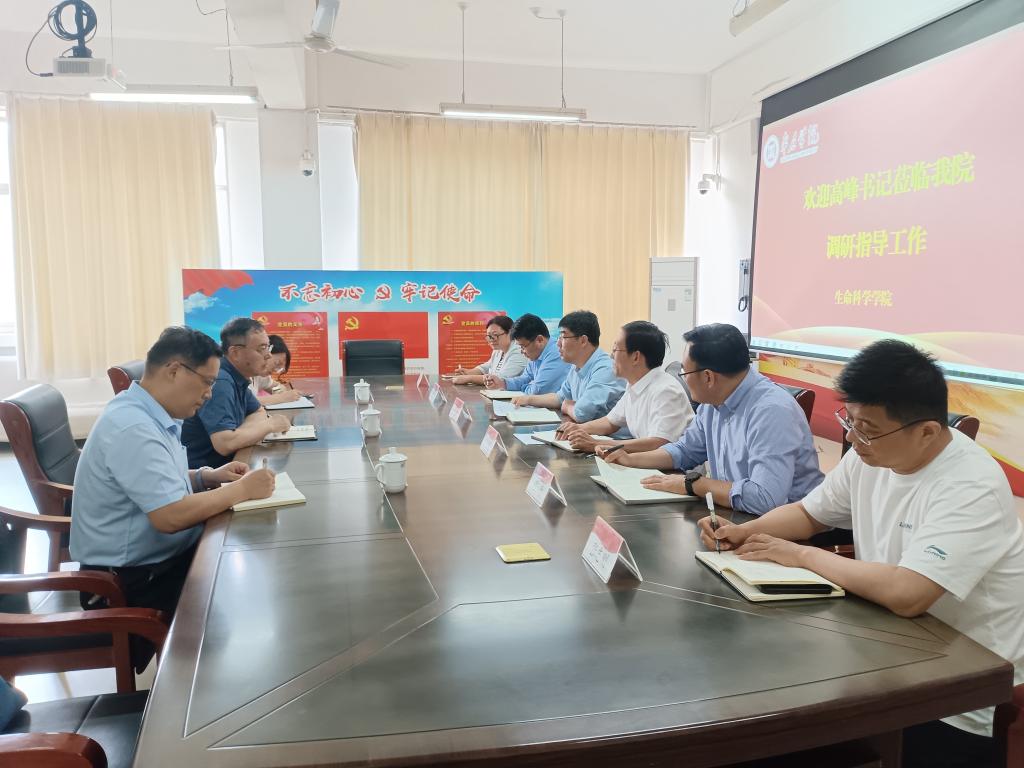5月27日,校党委书记高峰到beat365英国官方网站调研指导工作。校办公室和组织部人员陪同调研,学院领导班子成员参加座谈。