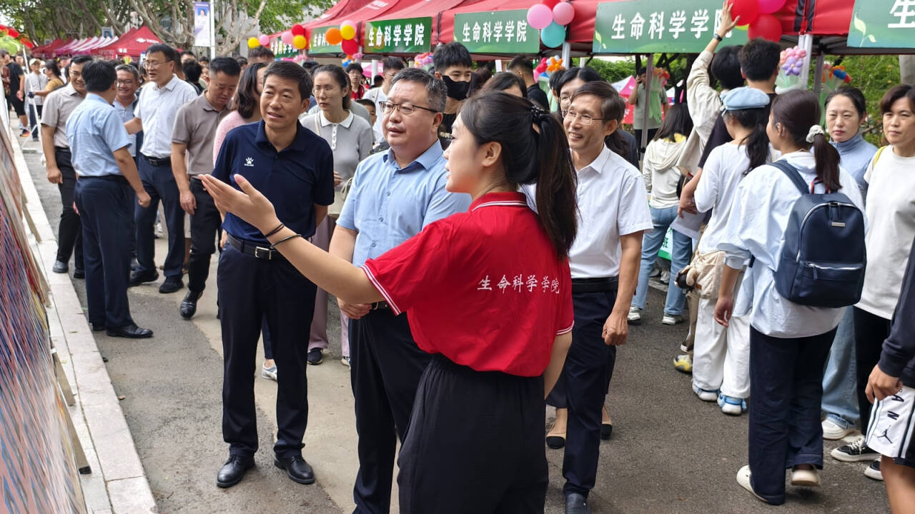 精心装点,彰显特色。为营造温馨热烈的迎新氛围,生命科学院提前布置理工楼及报到区域,创新推出迎新图片直播活动,第一时间分享新生报到精彩瞬间,为同学们开启大学生活留下影像纪念。除图片直播外,学院还精心设计了以“浪浪山”为主题的生科特色打卡点和专业特色展示区,现场同时展出考研光荣榜,激励新生勇敢开启大学旅程,生动呈现学院办学理念与学科魅力。清晰的指示标识、亲切的欢迎展板、趣味十足的合影互动区,不仅方便新生高效完成报到,更增强了大家的归属感和仪式感。
