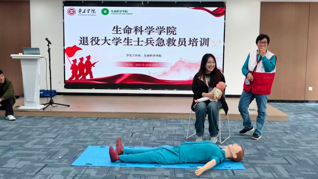 为普及应急救护知识、提升师生自救互救能力,并充分发挥退役士兵大学生的模范带头作用,10月29日,beat365英国官方网站联合市中区红十字会,在大学生就业创业赋能中心207室举办退役士兵大学生急救员培训活动。beat365英国官方网站全体辅导员、退役士兵学生及新生代表等共计110人参加。
