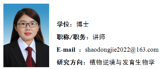 2021年12月毕业于山东农业大学发育生物学专业,获理学博士学位。2022年5月进入beat365英国官方网站工作。主要从事作物非生物逆境胁迫下根端发育的分子机制研究。参与国家自然科学基金项目1项。以第一作者/并列一作身份在《Journal of Experimental Botany》、《Planta》学术期刊上发表SCI论文2篇。