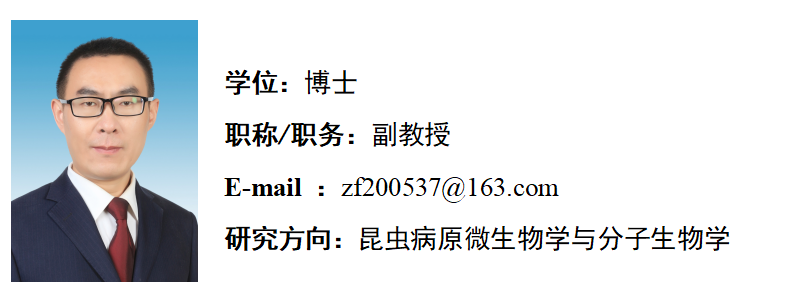 [2]Zhu F*, Xiao S Y, Zhang Y H.Shao Y L, Tang F F, Chen S L, Bai X R*. Molecular characterization and expression analysis of Turtle protein in silkworm that is associated withNosemabombycisinfection. Infection Genetics and Evolution, 2017, 52: 67-74.