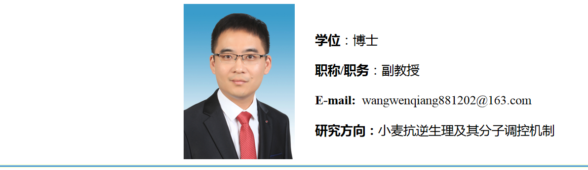 [14] Wang WQ, Hao QQ, Wang WL, Li QX, Wang W. 2017. The genetic characteristics in cytology and plant physiology of two wheat (Triticum aestivum) near isogenic lines with different freezing tolerances. Plant Cell Report 36: 1801-1814. (IF 2.989, 中科院三区)