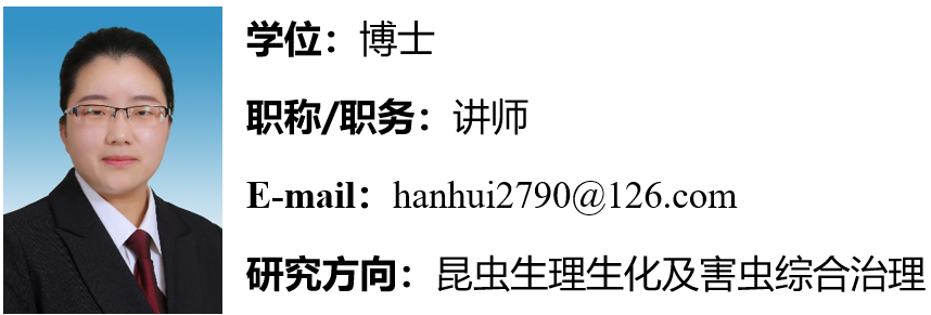 [2]Hui Han, ZhaoYang Feng, ShiPeng Han, Jie Chen, Da Wang, YunZhuan He. Molecular identification and functional characterization of methoprene-tolerant (Met) and krüppel-homolog 1 (Kr-h1) in Harmonia axyridis (Coleoptera: Coccinellidae). Journal of Economic Entomology, 2022, 115(1): 334–343.