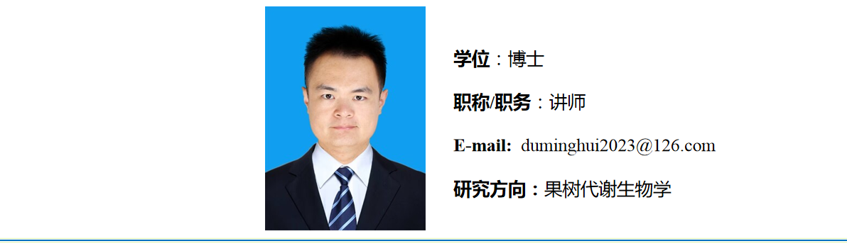 2023年6月毕业于山东农业大学获得园艺学博士学位,同年9月进入beat365英国官方网站工作。主要从事果树抗逆性的代谢生物学、生理学和分子生物学等的研究。近年来以第一作者和共同作者身份在《Plant Cell and Environment》和《Scientia Horticulturae》等国外学术期刊发表论文两篇。