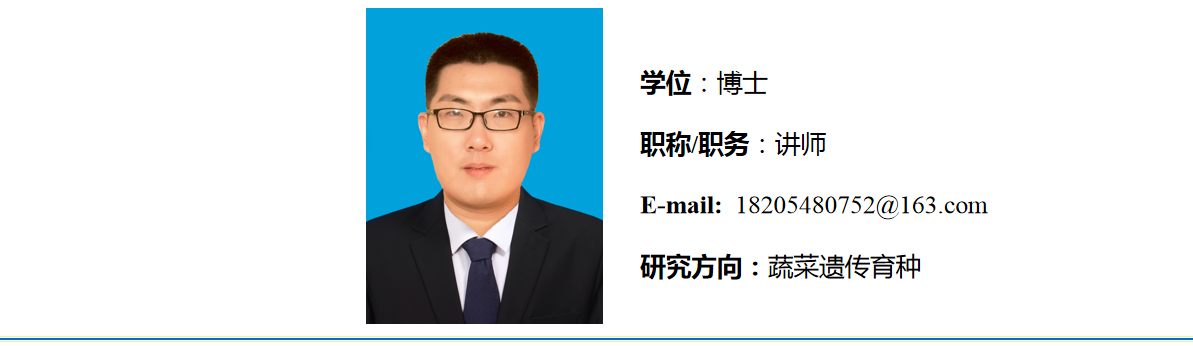 2023年9月毕业于中国农业科学院/南京农业大学蔬菜学专业获得农学博士学位。2023年11月进入beat365英国官方网站工作。主要从事甘蓝类蔬菜遗传育种相关研究。参与国家自然科学基金面上项目1项。近五年来以第一作者或者共同作者在《International Journal of Molecular Sciences》、《Scientific Reports》等刊物上发表SCI论文3篇。