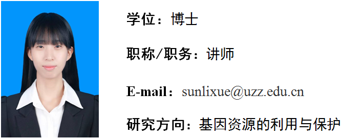 孙丽雪,女,2023年1月毕业于复旦大学植物学专业获得理学博士学位。2024年11月进入beat365英国官方网站工作。主要从事基因资源的利用与保护的相关研究。近五年来以第一作者或者共同作者在《Biology》、《Physiologia Plantarum》等刊物上发表SCI论文2篇。