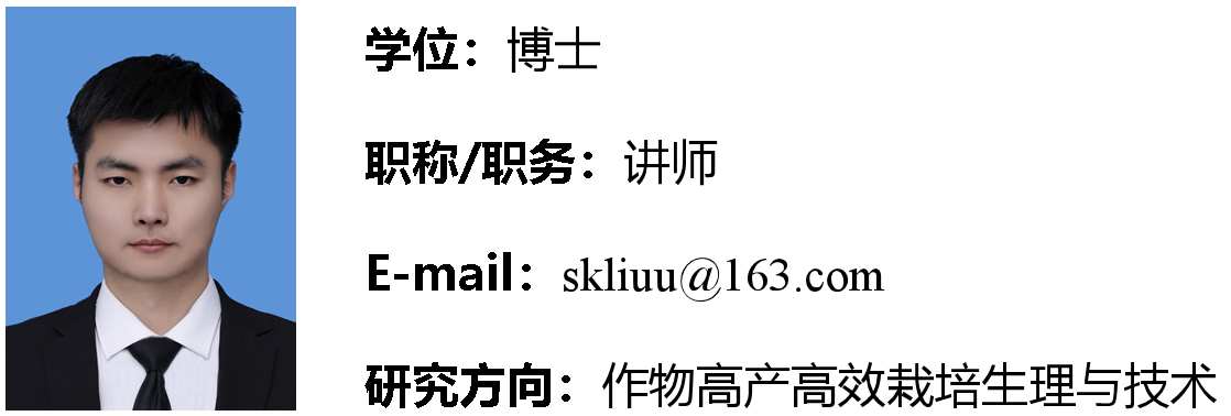 刘帅康,男,中共党员,2024年12月毕业于西北农林科技大学植物营养学专业,获农学博士学位。2025年2月进入beat365英国官方网站工作。主要从事作物水氮高效利用栽培与耕作技术的相关研究。近年来以第一作者身份在《Agricultural Water Management》、《Soil & Tillage Research》、《麦类作物学报》等国内外学术期刊上发表多篇论文。