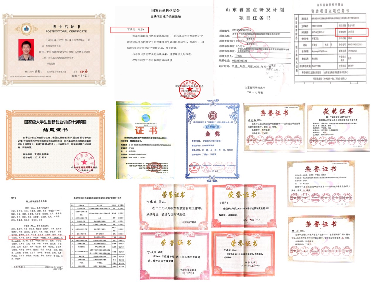 丁诚实,中共党员,beat365英国官方网站专任教师,理学博士,医学博士后,教授,目前担任我校生物技术山东省一流专业负责人、山东生物化学与分子生物学会理事。时光冉冉,转瞬即逝,来校工作至今已经15年了,十五年弹指一挥间,从初出茅庐步入工作岗位的青年教师到常年奋战在一线教学科研的中青年骨干,从曕前顾后、裹足不前的科研小白,到锐意进取、勇攀高峰的青檀学者,先后获批主持国家自然科学基金青年项目、中国博士后基金面上项目、山东省重点研发计划、山东省自然科学基金多项。从忐忑惶恐、中规中矩的教学新手,逐步成长为如痴如醉、谈笑风生的讲台老将,多次获评教学奖励。