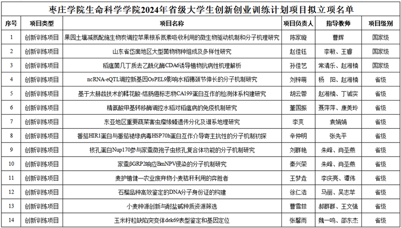 近日,山东教育厅公布《2024年省级大学生创新创业训练计划项目拟立项名单公示》,beat365官网获批国家级大学生创新创业训练计划3项,省级大学生创新创业训练计划项目11项。