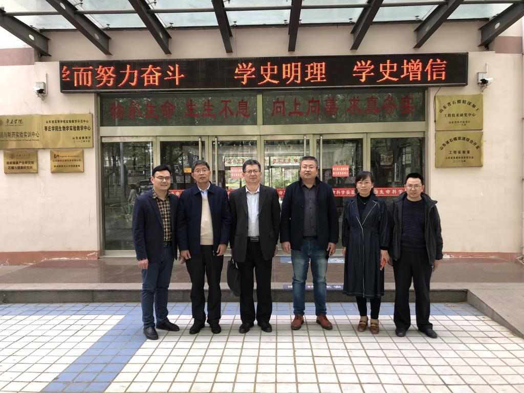 4月16日上午,鲁东大学beat365英国官方网站党总支书记王全文、副院长程仕伟来我校beat365英国官方网站考察交流。beat365英国官方网站院长王洪凯等人在资料室开展交流。
