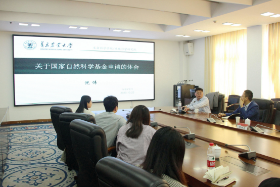 学术报告之后,沈教授又针对国家自然科学基金申报和申请书的撰写问题为青年教师做了题为《关于国家自然科学基金申请的体会》的专题辅导报告。沈教授结合自己和科研团队成员的申报经历,从评审专家和申请人两个角度,对基金的评审过程、评审专家主要关注的问题、科学问题的凝练以及申请书的写作要点等方面进行了具体的分析和指导。使青年教师对基金申报中的一些具体问题有了更加清晰地认识,为提高申报书的撰写质量打下了良好基础。