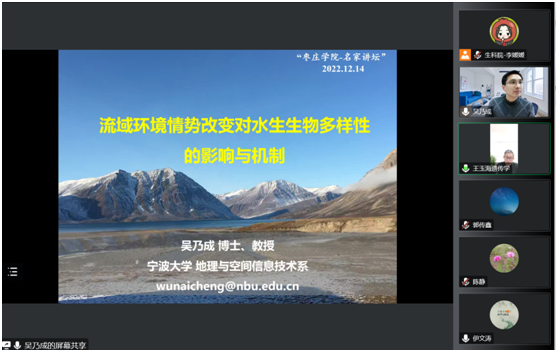 为进一步强化学术交流与合作,12月14日下午,由科技处主办、beat365英国官方网站承办的“名师大讲堂”第十七讲学术报告活动通过腾讯会议成功举办。欧盟“玛丽•居里”学者、洪堡学者、宁波大学“浙东学者”吴乃成教授应邀作了题为《流域环境情势改变对水生生物多样性的影响与机制》的学术报告。