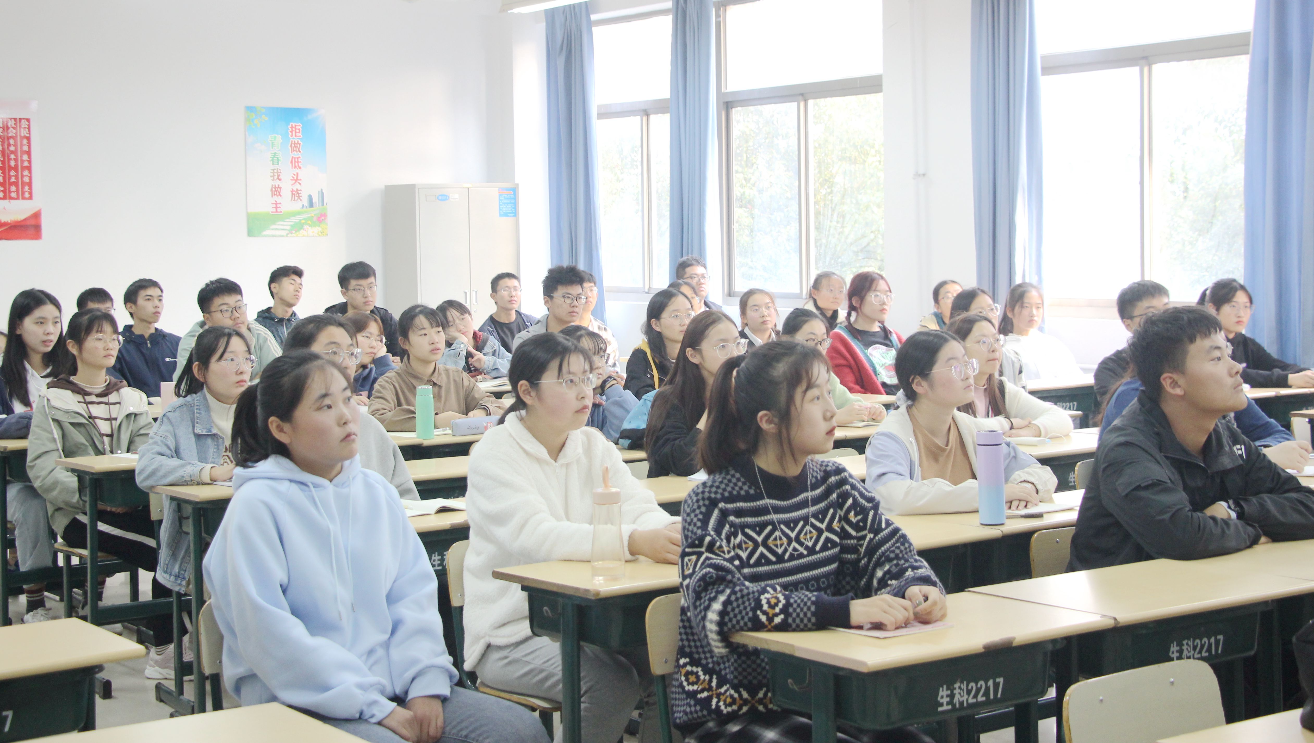 会上,学生们专注听讲,认真记录,提高了参会学生对于生物专业及相关学科的了解。