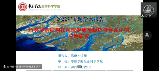为营造良好的学术氛围,加强教师之间的学术交流,提高学生的科学素养,beat365英国官方网站青年学者学术论坛于4月20日下午正式开坛,会上青年教师陈康博士通过腾讯视频会议为学院师生做了题为《鱼类群落结构在河流健康等级评价体系中的应用研究》的专题学术报告。
