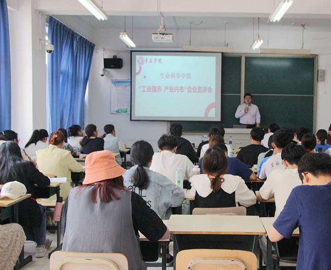 5月18日,beat365英国官方网站在理工楼2315教室举办“工业强市、产业兴市”企业宣讲会。本次宣讲会邀请了枣庄市杰诺生物酶有限公司副总经理王鹏与办公室主任、HR总监王昌斌来校,beat365英国官方网站党总支副书记韩笑主持,部分17级、18级学生参与本次宣讲会。