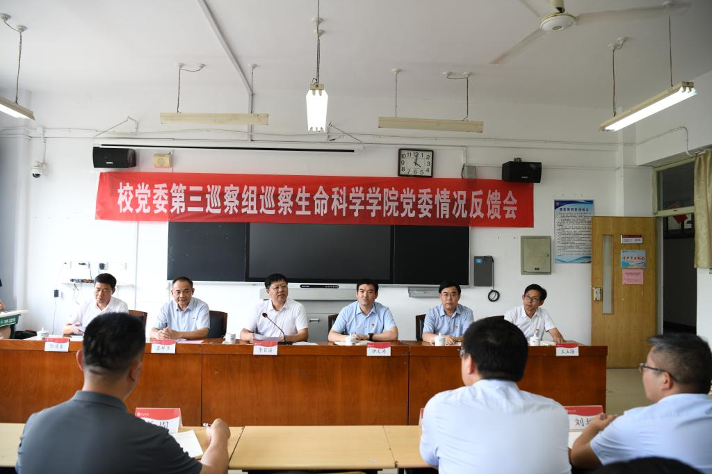 6月27日下午,校党委第三巡察组巡察beat365英国官方网站党委工作反馈会在理工楼2219召开,校党委委员、副校长李目海,校党委巡察工作领导小组成员、组织部部长伊文涛,校党委第三巡察组组长孟祥卫、巡审联动组组长张宗利出席会议。会议由beat365英国官方网站党委书记郭传鑫主持。
