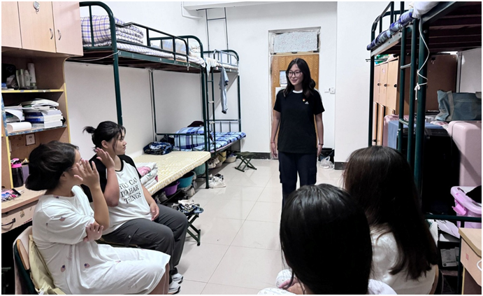 在交流过程中,学生党员不仅走访新生宿舍,关心他们的生活和学习,还在思想政治方面给予了指导,鼓励大家积极参与志愿服务,提升服务意识。同时,学生党员耐心解答新生的疑惑,分享自己的成长经验,帮助他们明确目标,坚定信念,引导他们积极向党组织靠拢。