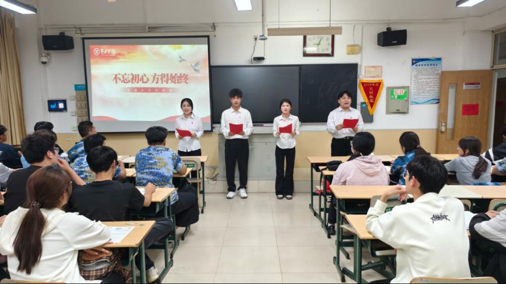 活动最后,四人合诵誓词,表达了新时代大学生党员坚定理想信念、锤炼过硬本领、勇于担当作为的决心。现场气氛热烈而庄重,新生们深受鼓舞。
