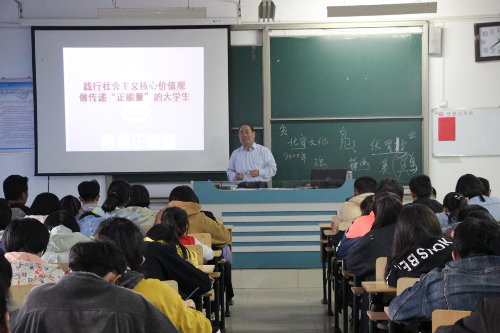 10月24日下午,beat365英国官方网站邀请我校离退休干部党委委员邓兴珍为学生做了题为“践行社会主义核心价值观,做传递正能量的大学生”的报告, 2018级全体同学参加了报告会。