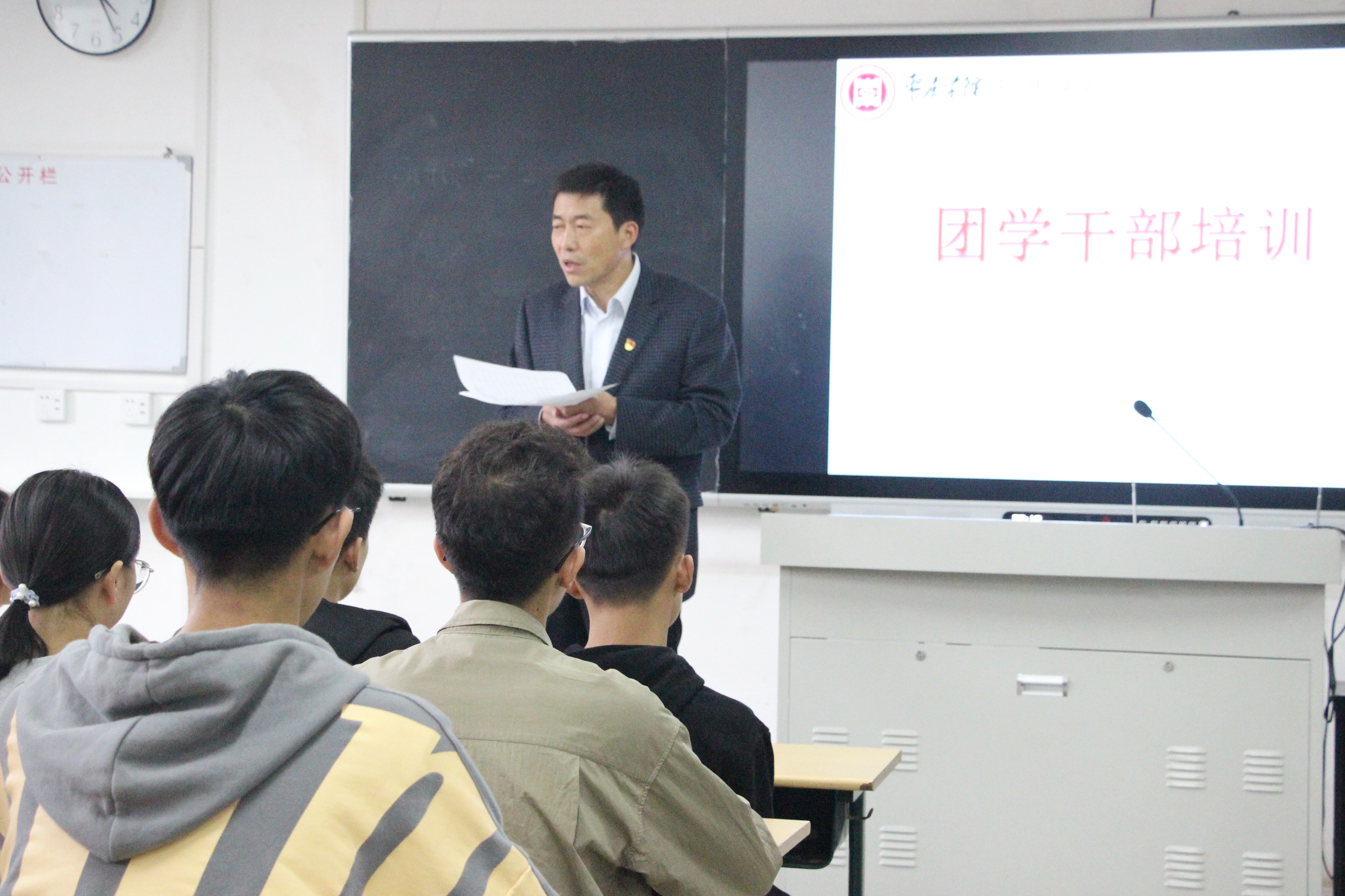 为进一步提高学生干部自身素质,beat365英国官方网站于11月4日下午4点在理工楼2219教室召开团学干部培训的第一课,培训对象是学生会干部、19级班长、团支书。学院党总支书记郭传鑫、党总支副书记陈原国出席了此次会议。