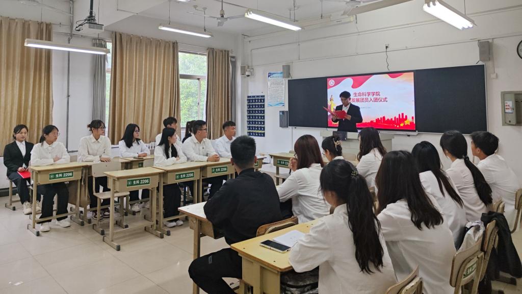 入团仪式在庄严的国歌声中拉开序幕。随后,主持人宣读了新发展团员名单,院学生会主席宋增健为18名新团员颁发团员证并佩戴团徽。新团员面向团旗庄严宣誓,用坚定的声音许下为共产主义事业而奋斗的誓言。优秀团员代表宋增健同学对新团员分享了自己的经历,帮助新团员加深对团员身份的了解。新团员代表李政莹同学表示,将继承发扬共青团的优良传统,力争成为优秀的共青团员。