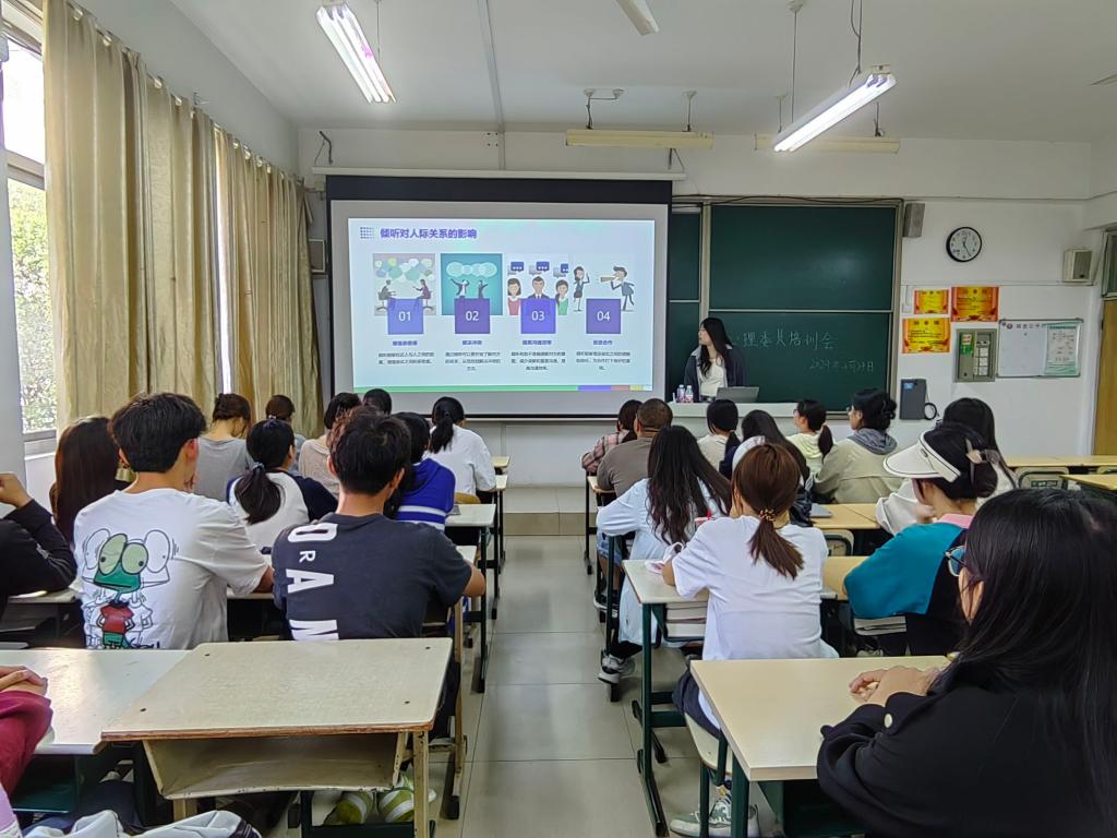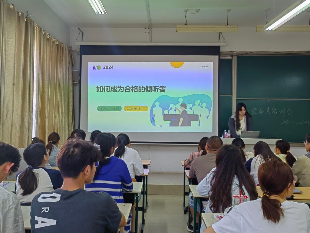 为培养学生健全的人格和良好的个性心理品质,提高全体学生的心理素质,不断提升学生心理健康水平,促进心理健康教育的进一步开展,普及心理知识,强化心理素质。beat365英国官方网站于2024年9月19日17:00——17:30在理工楼2207教室开展“如何成为合格的倾听者”心理委员培训会。本次活动由beat365英国官方网站文明自律委员会心理健康部组织开展,各班级心理委员参与本次活动,心理健康部干事李欣颖主持此次会议。