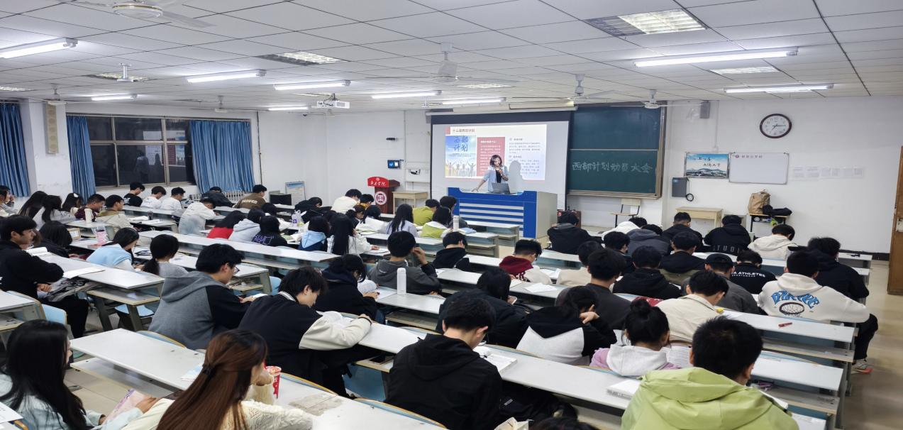 会上,负责人通过视频、ppt等方式详细介绍了西部计划的发展历程、项目内容、政策支持以及报名流程等关键信息。西部计划不仅是一项重要的国家人才工程,更是当代青年奉献社会、实现个人价值的广阔舞台。通过参与西部计划,同学们能够深入了解国情、民情,在实践中锻炼自己,为西部发展贡献力量。