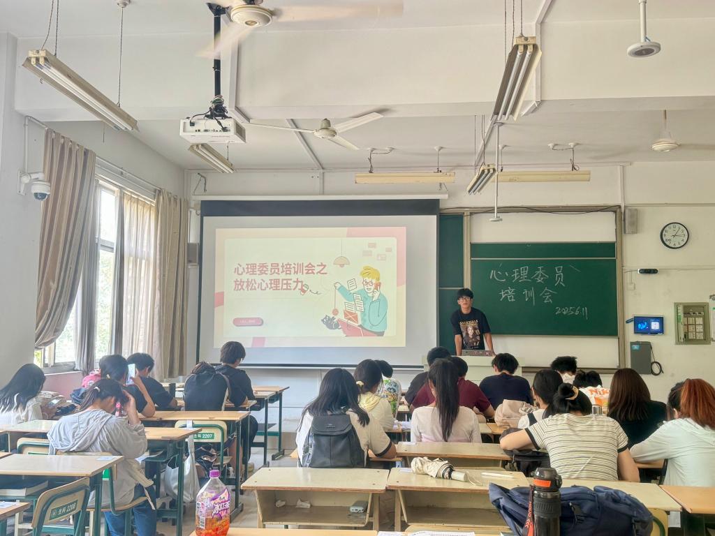 为宣传心理知识,增强对心理健康知识的了解,推进素质教育,提高心理委员工作技能,更好地保障大学生心理健康。beat365英国官方网站于2025年6月11日15:00——15:30在理工楼2207教室开展“心理委员培训会之放松心理压力”。本次活动由beat365英国官方网站文明自律委员会心理健康部组织开展,各班级心理委员参与本次活动,心理健康部干事李传宇主持此次会议。
