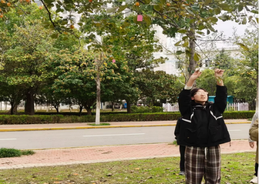 活动伊始,在志愿者引导下,同学们移步至柿子树旁,在卡片上写下对家人的思念、对校园的祝福及对未来的期许,随后将卡片悬挂枝头,让“柿柿如意”的美好寓意与真挚情感共同定格。