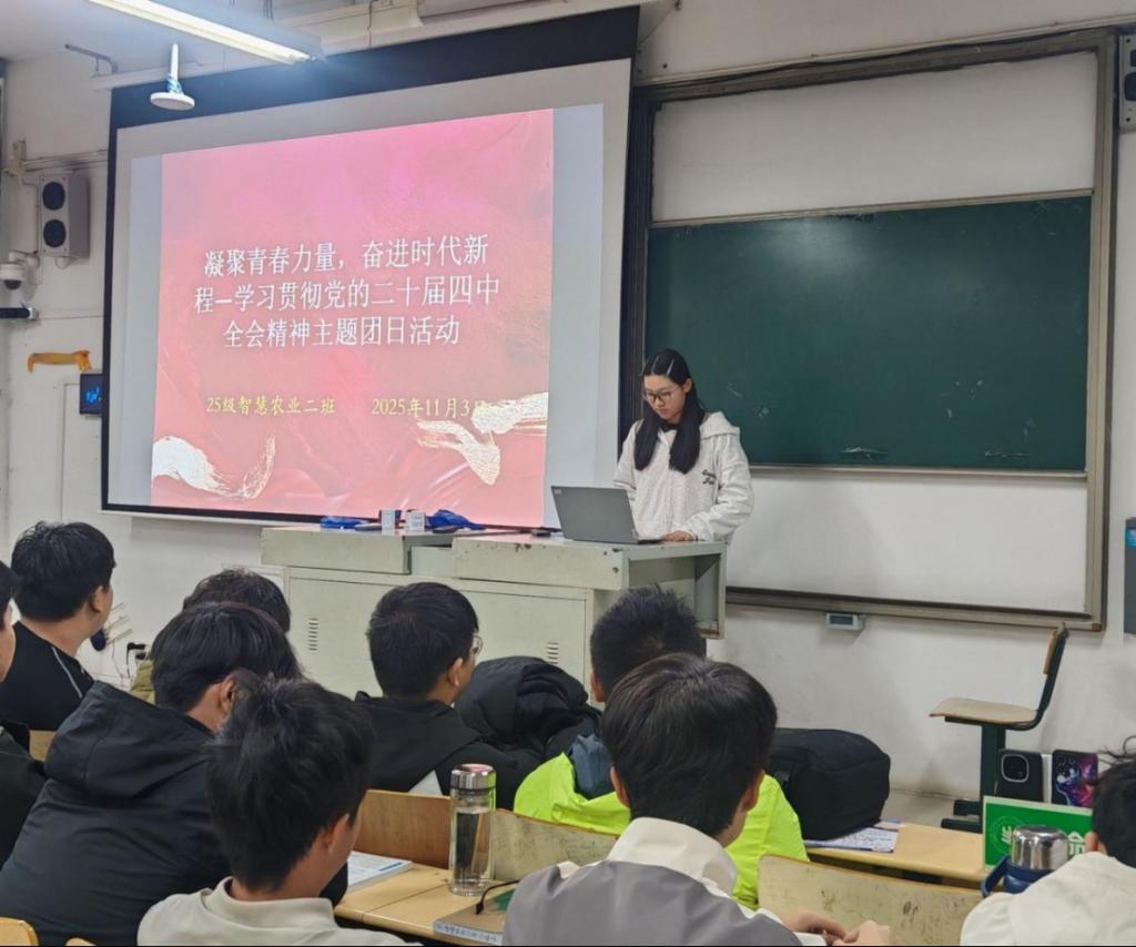 为深入学习贯彻党的二十届四中全会精神,引领广大青年学子坚定理想信念、勇担时代使命,11月3日,beat365英国官方网站组织各班级团支部集中开展了“凝聚青春力量,奋进时代新程——学习贯彻党的二十届四中全会精神”主题团日活动。全院同学积极响应,踊跃参与,活动由各班团支书主持。